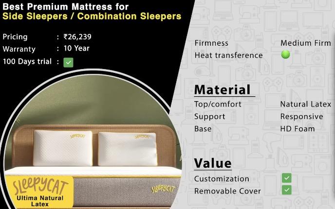 - Sleep Company Smart Ortho: Smart Grid, medium-firm, breathable with 2500+ air channels. These options, highlighted in the article, balance comfort and support for side and combination sleepers.