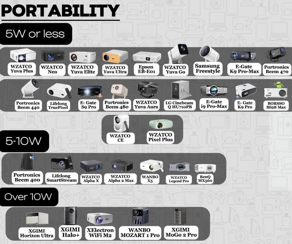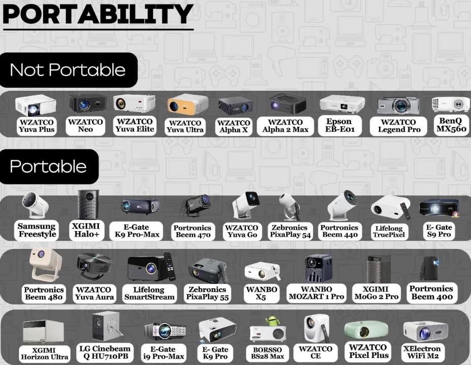 So, if you’re sure you do need to move the projector around, go for a portable projector; otherwise, a fixed projector is a better option for you both from a picture quality and a value for money point of view. In the given image, you can see portable projectors and the ones that are not, so you can choose accordingly.