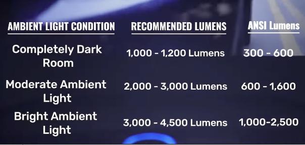 Most low-cost projectors have less than 600 ANSI lumens. So, work best only in completely dark rooms; higher cost projectors work in moderate to high ambient light.