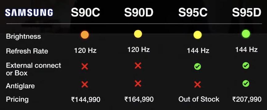 In addition, the S95D has an anti-glare capability, which is useful in rooms which have a lot of light, but not so much in very dark or home theater rooms. All really good changes, but these advancements in the Samsung S95 series come at a much higher price, upwards of 2 lakhs.